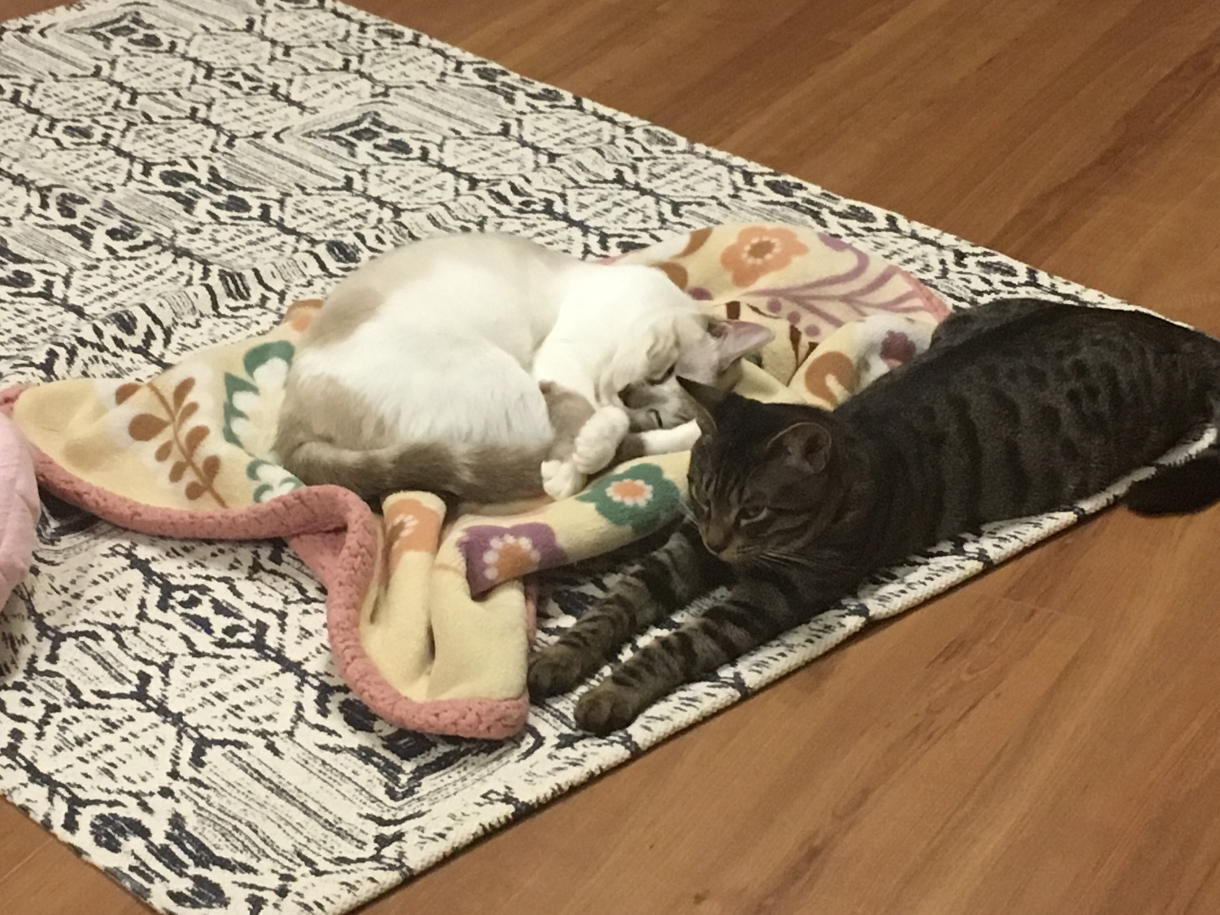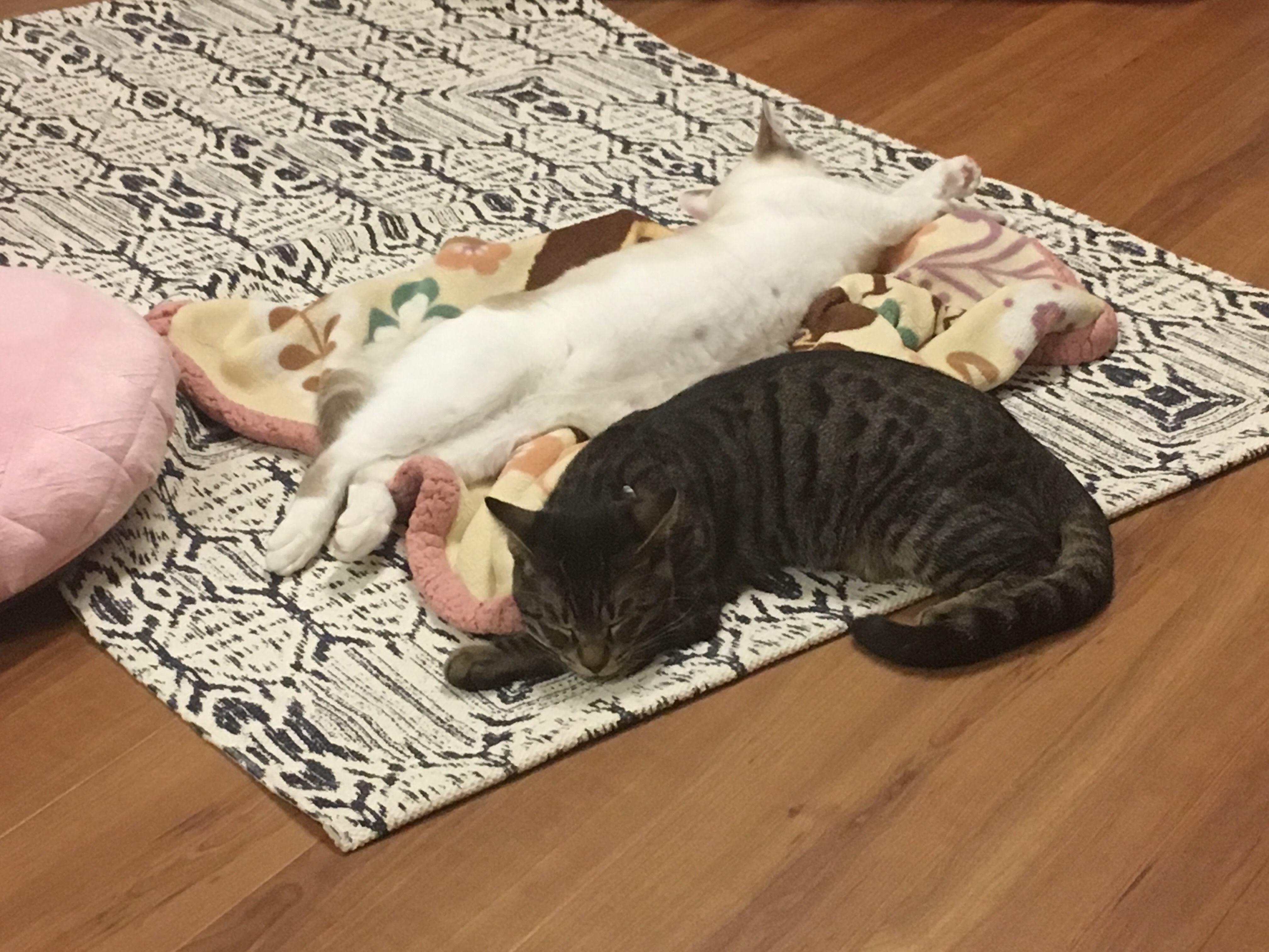 ナッツとかん太は、あまりご飯催促が激しくないのですが、なんでご飯ないの?という顔はされました。。(かん太さんも連帯責任で)