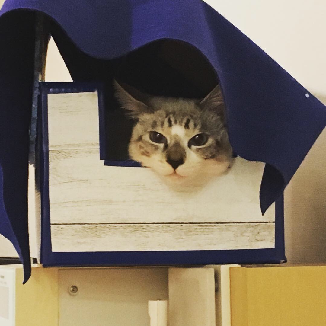 このお家もどき(どんどん破壊されて何がなんだかわからなくなってきている)はAmazonのダンボールで出来ているのですが、ナッツが入るとみっしり。そこに無理にかん太が入って、身動き取れないレベルにみっしりしてることもあります。ちょうど顎乗せできるのがお気に入りみたいです。