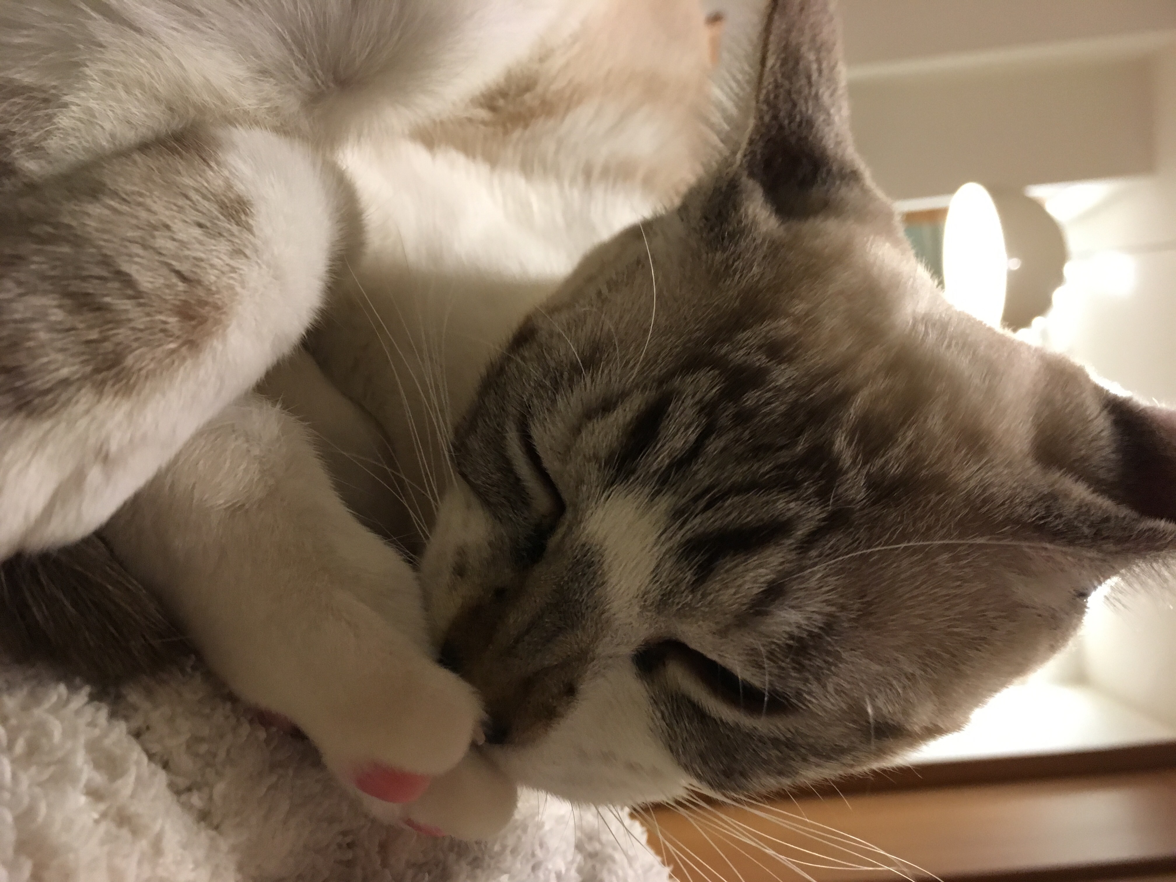 ナッツが足の上に乗ってくるのはいつものことなのですが。